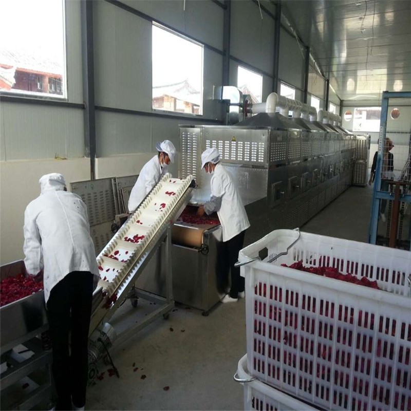 鮮花烘干殺菌設備#桃花干燥殺青機器#玫瑰花殺菌快速烘干微波設備。使用工業微波可以將新鮮的花朵、花蕾、葉子、蔬菜等快速烘干,微波設備還可以做到不需要任何預熱瞬間升溫殺青的作用,烘干后的花朵顏色亮麗,口感極佳。工業微波爐可以做到一機多用,在烘干殺青的同時還能還將鮮花內含有的細菌一并殺死,烘干后的成品可以直接沖泡飲用。