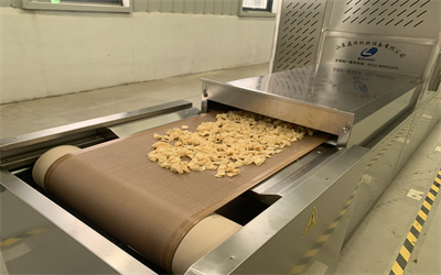 在操作流程上,豆皮微波快速烘干設備實現了自動化與智能化相結合。用戶只需將濕豆皮倒進料斗中,然后經過我們電磁振動下料器自動均勻鋪放在傳送帶上,設定好烘干參數,設備便會進行連續化生產。